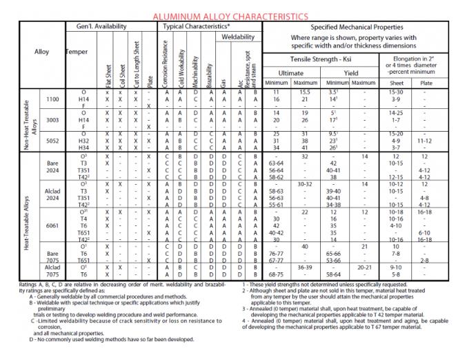 1. 3003. This would be the best solution for most application. This alloy exhibits medium strength, the best cold workability together with high elongation such as 25% and one of the biggest differences between yield and tensile strength of 14 Ksi (Kilo-pound of force per square inch) at 0 temper – annealed, by the H14 temper which is partially annealed and strain hardened.