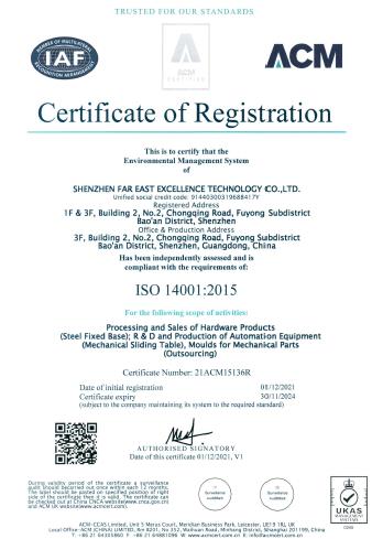 Far East Tech has obtained ISO 14001 and has 16 years of rich experience in precision machining. We have a professional technical team and professional equipment to provide solutions for our customers. Welcome to contact us.
