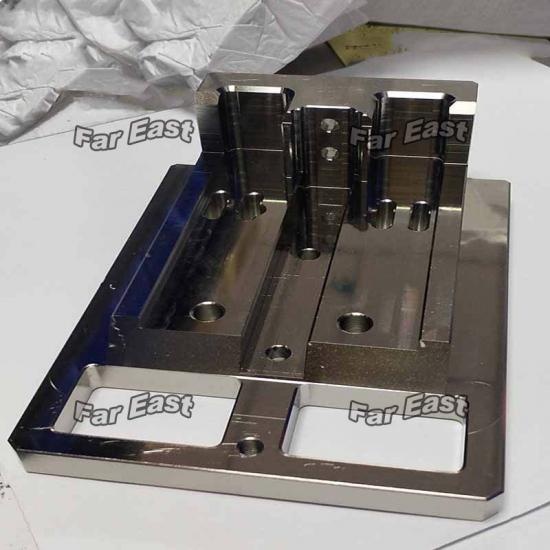 It is the component of a Machine and high in precision machined parts, which is very highly strict to perpendicularity tolerance requirement 0.01, surface treatment is electroless nickel deposition and the surface without any defects and scratches.